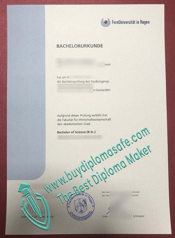 The University of Hagen offers high-quality courses with a flexible academic system, providing diverse learning opportunities for a wide range of students. Buy a FernUniversität in Hagen Urkunde. Order a FernUniversität in Hagen diploma. The University of Hagen consists of the Faculty of Culture and Society, the Faculty of Mathematics and Informatics, the Faculty of Economics, and the Faculty of Law, offering bachelor’s, master’s, and doctoral degrees. Undergraduate programs include: Education, Informatics, Culture, History, Literature, Philosophy, Mathematics, Political Science, Psychology, Law, Sociology, Management, Economic Informatics, and Economics; Master’s programs include: Education and Media, Computer Science, Electrical Engineering and Information Technology, Modern Europe – History and Literature, Management, Informatics, Mathematics, Philosophy, Psychology, Law, National Economy, and Economic Informatics. Buy FernUniversität in Hagen Bachelor Zeugnis.