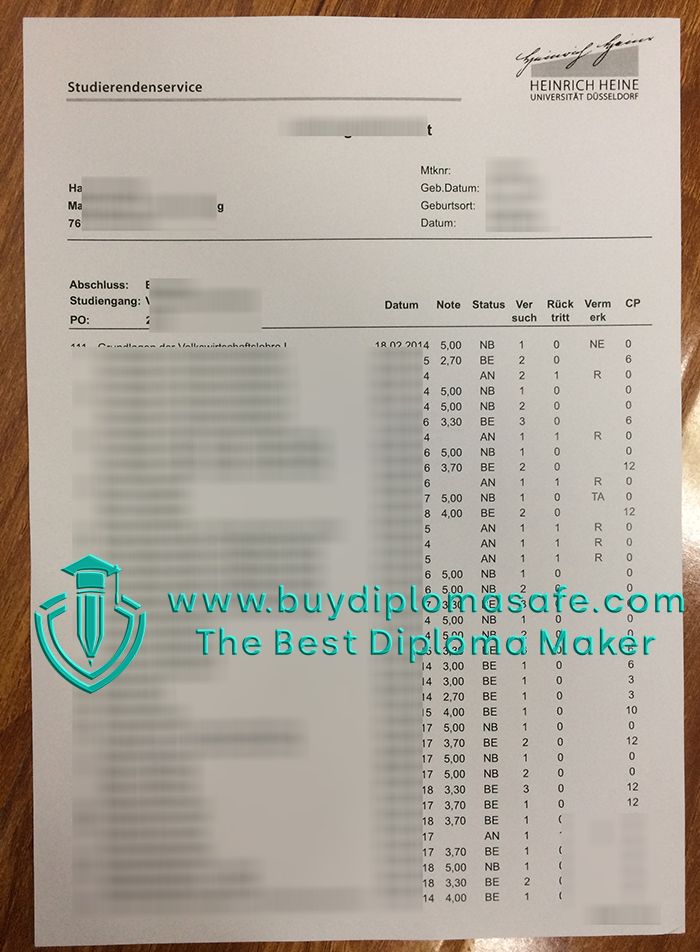 Buy a Heinrich-Heine-Universität Düsseldorf transcript. Order a Heinrich-Heine-Universität Düsseldorf degree and transcript. Buy a transcript online. The University of Düsseldorf offers unique and highly influential programs throughout Germany, such as Literary Translation, Jewish Culture, Media Science, Modern Japanese Studies, and German as a Foreign Language. The university’s economics program focuses on international economics. The Faculty of Law is nationally renowned for its economic law program. Building on its medical expertise, the university has established a significant position in biotechnology, frequently producing significant biotechnology discoveries that have made waves nationally and internationally. The university’s Biomedical Research Center (BMFZ) has become a nationally recognized center for this field.