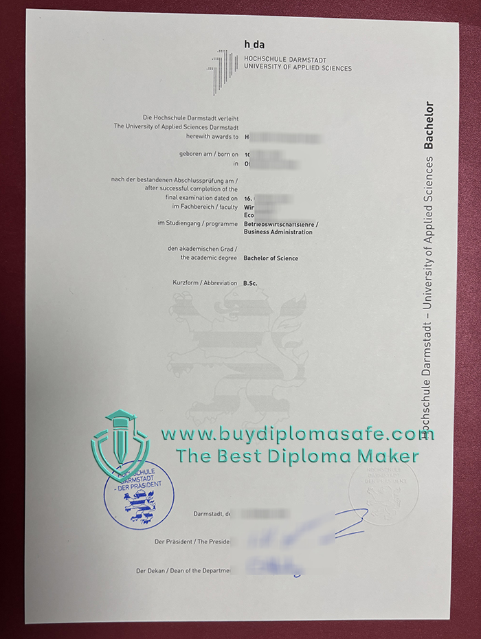 In the past five years, researchers at Darmstadt University of Applied Sciences have initiated over 20 research projects with international partners. European partners include Spain, Sweden, France, and Finland. Furthermore, partners from outside Europe are participating in research projects examining market conditions for German companies in rapidly developing economies such as China and Brazil. Hochschule Darmstadt diploma and transcript for sale.
