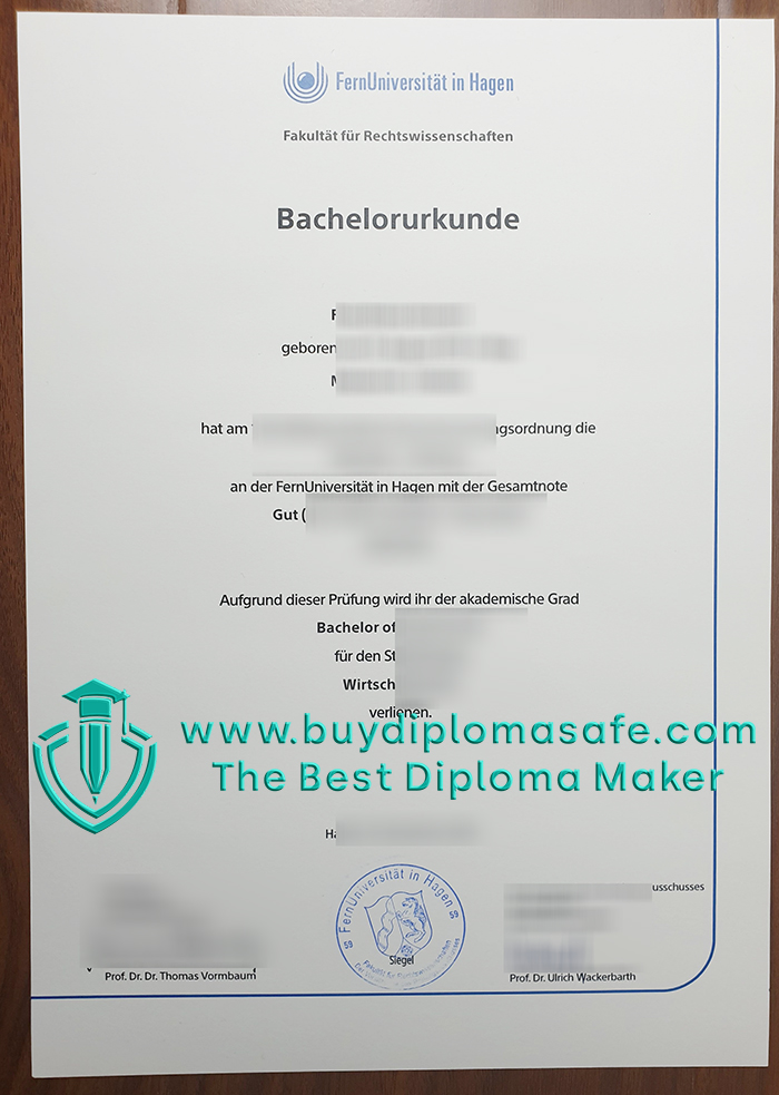 The University of Hagen is Germany’s largest public distance learning institution of higher learning. Buy a University of Hagen Urkunde. Order a University of Hagen diploma. How to make a University of Hagen degree? Buy a fake diploma. Order a degree online. With its main campus in Hagen, it offers degree programs in eight disciplines, including business administration, economics, law, mathematics, computer science, psychology, social sciences, and political science, through distance learning. As a member of the European Association of Distance Learning Universities, the degrees awarded by the university have the same legal validity as those awarded by traditional universities. As of the winter semester of 2022, the university had 70,000 students enrolled, ranking second among German universities. The university has outstanding teaching and research capabilities, having produced two Leibniz Prize winners.
